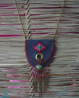 AZTECA NECKLACE IN LEATHER AND WOOL